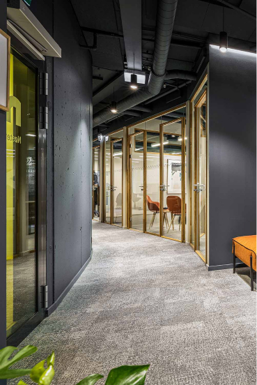 Flexibility was key to the design. The boardroom, positioned with a direct view of St Paul’s cathedral and The Shard, provides a premium meeting experience, while two smaller meeting rooms and private director offices cater to different working styles. A striking tea point enclosed in glass maintains openness while