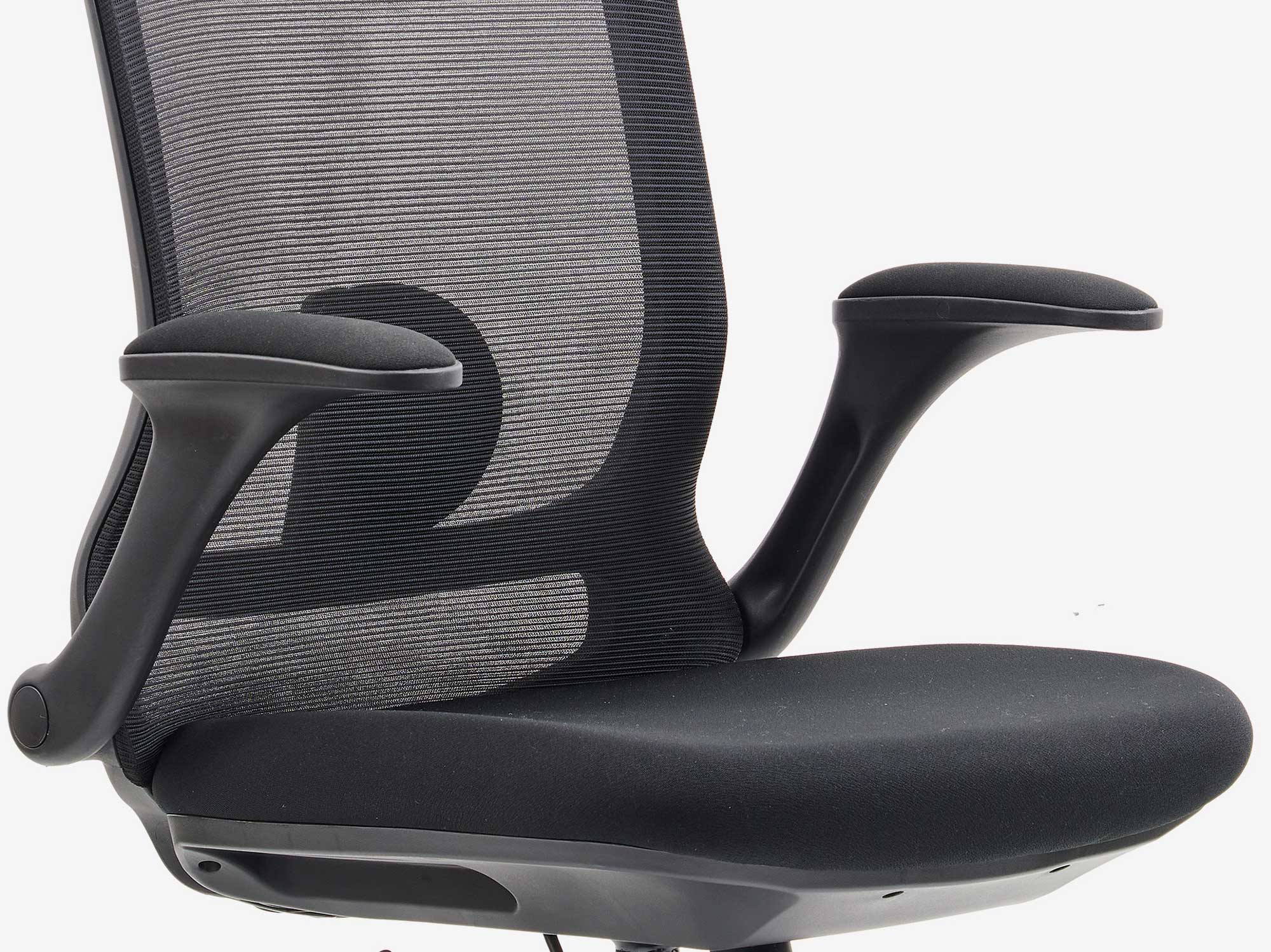 The Arlo Office Chair offers comfortable, ergonomic support with a soft-padded 1.2D headrest and a PP-reinforced back frame paired with an adjustable lumbar cushion. It includes PP-reinforced flip-up armrests with padded surfaces, a seat built with 14mm plywood and 55-density molded sponge, a 2.5mm mid-class base, a 100N-rated gas pole, 330PP-wrapped legs, and 55# wheels for smooth mobility.
